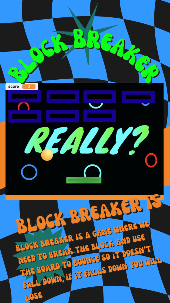 Block Breaker is a game that you have to break all block in my game you have many blocks to break and you have paddle to bounce the ball.