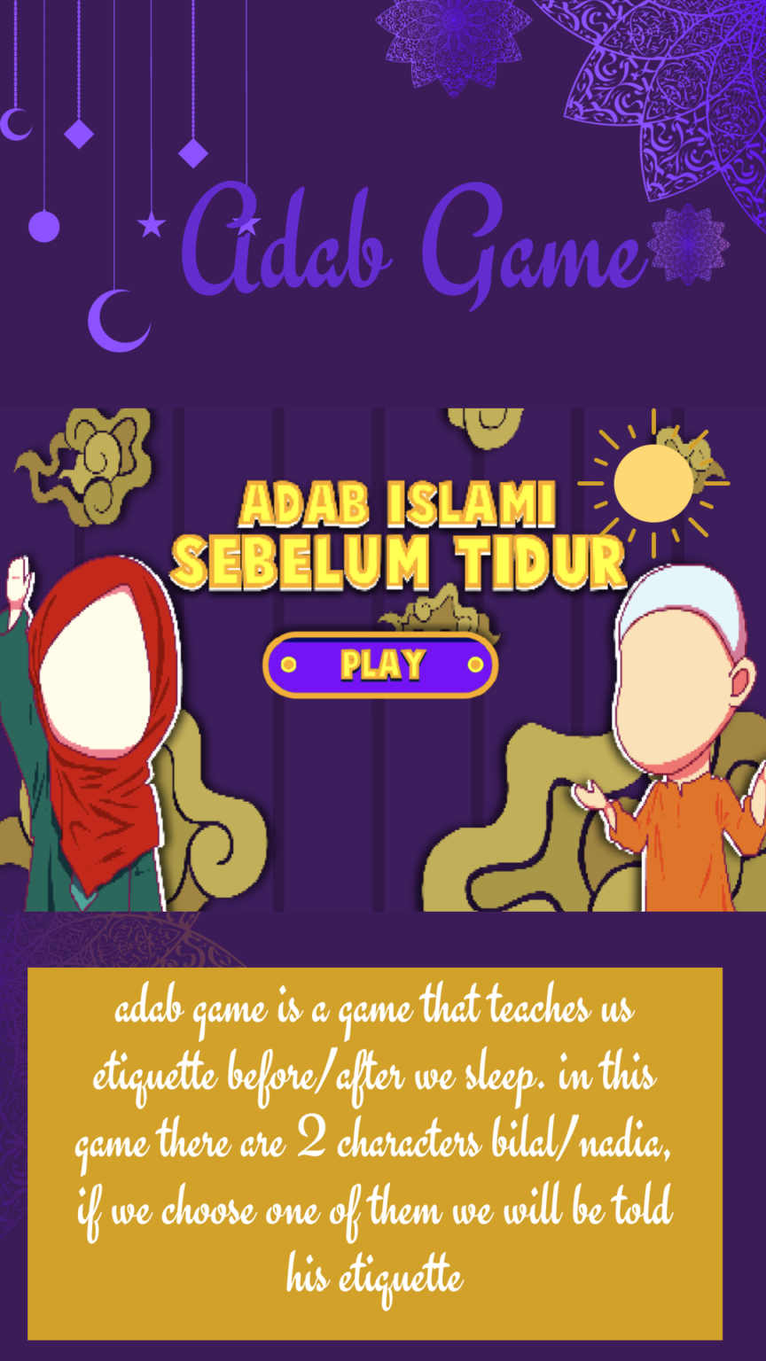 Islamic Adab Before Sleep Is a game that you can see many adab before sleep slides, and you can choose character in here, there is Bilal and Nadia, click the image to play the game.